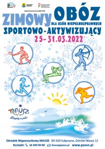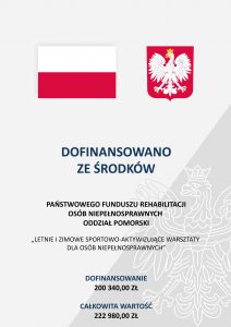 Zaprasza do złożenia oferty cenowej na organizację dwóch 7-dniowych sportowo – aktywizujących warsztatów pn.: „Letnie i zimowe sportowo-aktywizujące warsztaty dla osób niepełnosprawnych” dla 50 osób podczas każdego z warsztatów (łącznie 100 osób), a także dla 18 osób kadry podczas każdych z dwóch warsztatów, w zakresie zakwaterowania, wyżywienia oraz udostępnienia infrastruktury towarzyszącej w obiekcie szkoleniowo – wypoczynkowym.